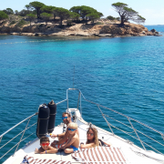 Notre trawler de 18m (56 pieds) « Caloa » vous emmène pour une merveilleuse découverte des criques et côtes de Pinarello à Santa Manza sans les contraintes des routes encombrées de l’été du 1er Mai au 31 Octobre.