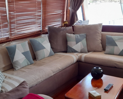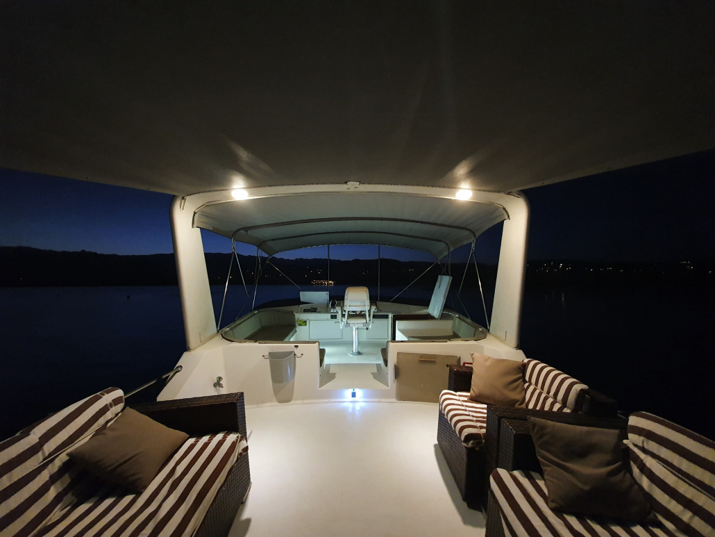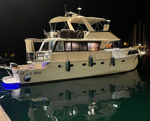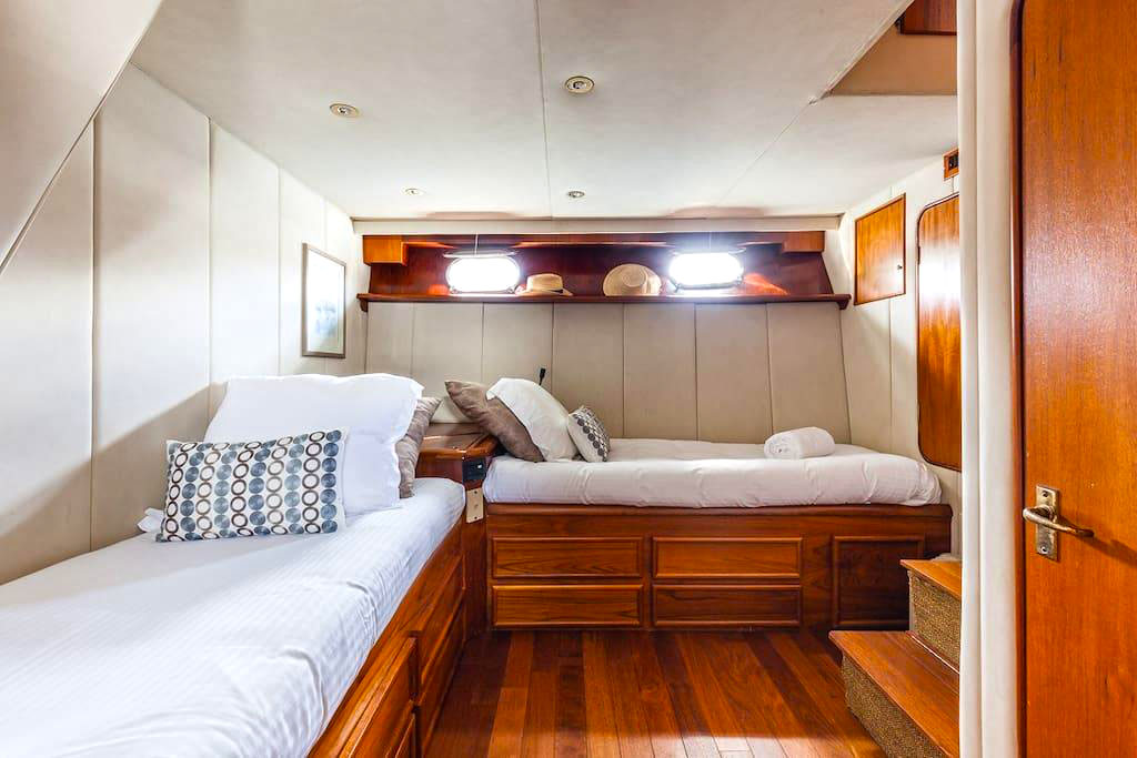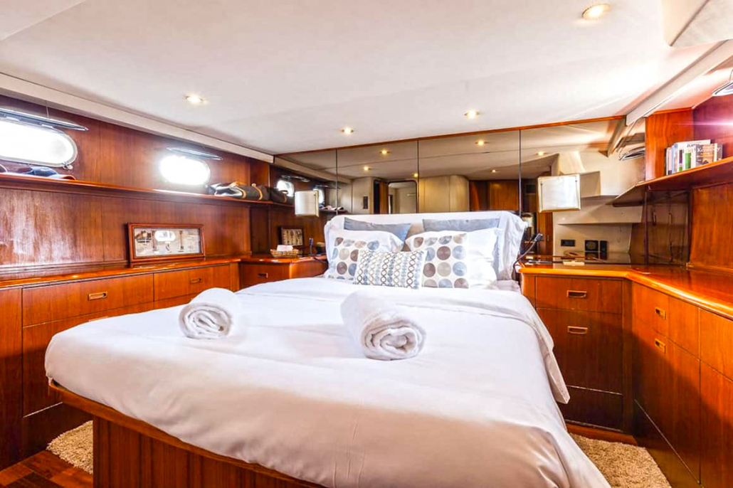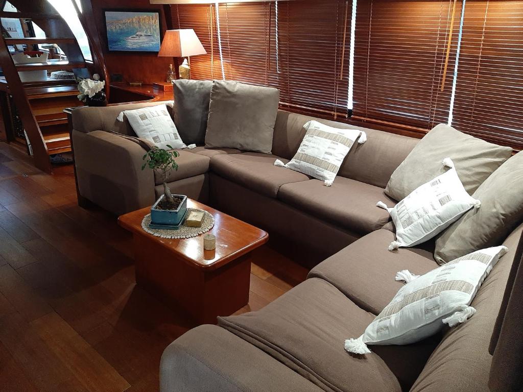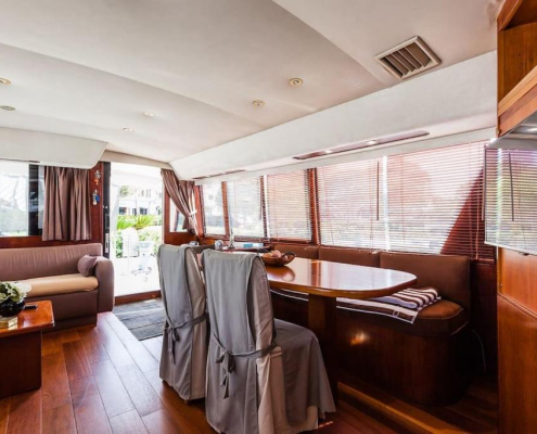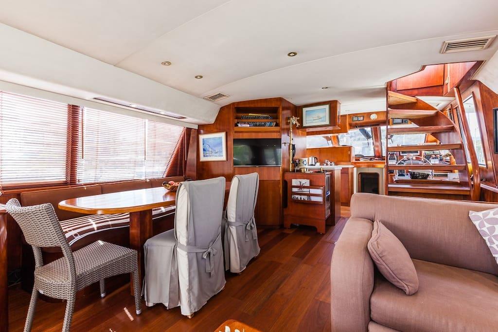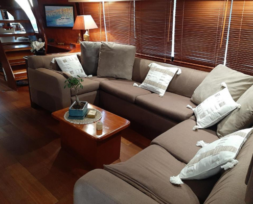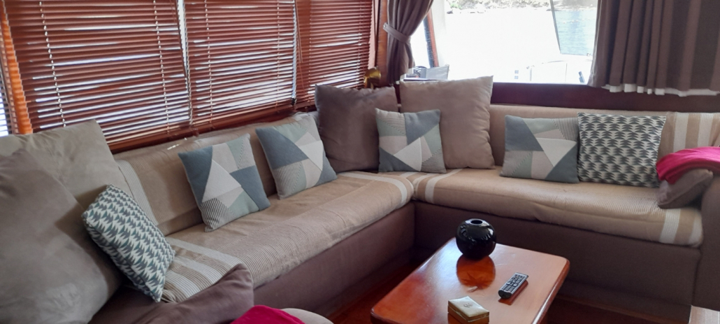 Ces bateaux de croisière sont appréciés pour leur confort et leur autonomie, Le « Caloa » ne déroge pas à la règle. C’est un Trawler de 18m de long avec un intérieur élégant et raffiné tout en bois qui se compose :